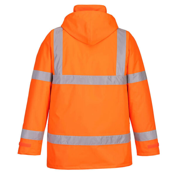 Najbardziej popularna na rynku kurtka ostrzegawcza, wodoodporna i ocieplana. Posiada liczne obszerne kieszenie oraz regulowany kaptur ukryty w kołnierzu. Zapinana na napy i zamek błyskawiczny ukryty pod listwą.